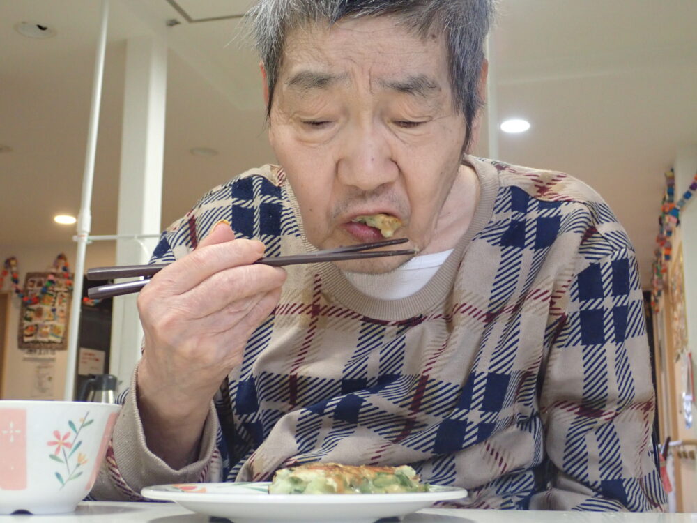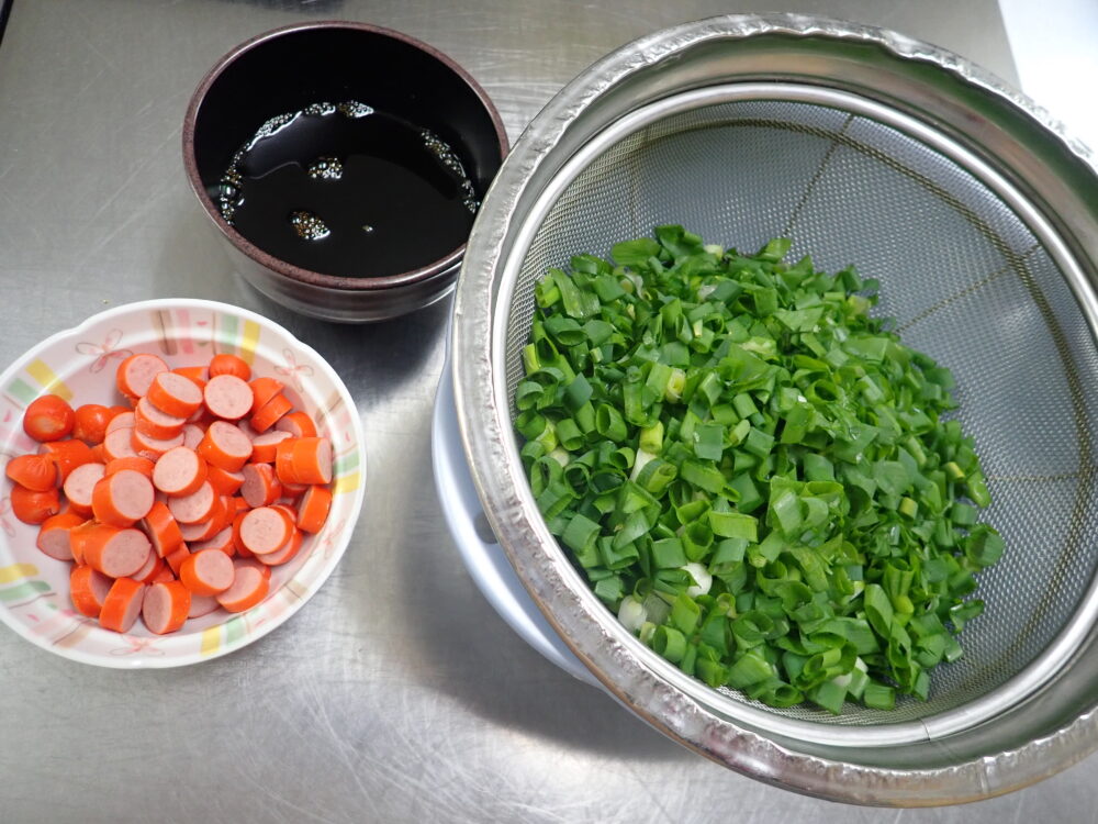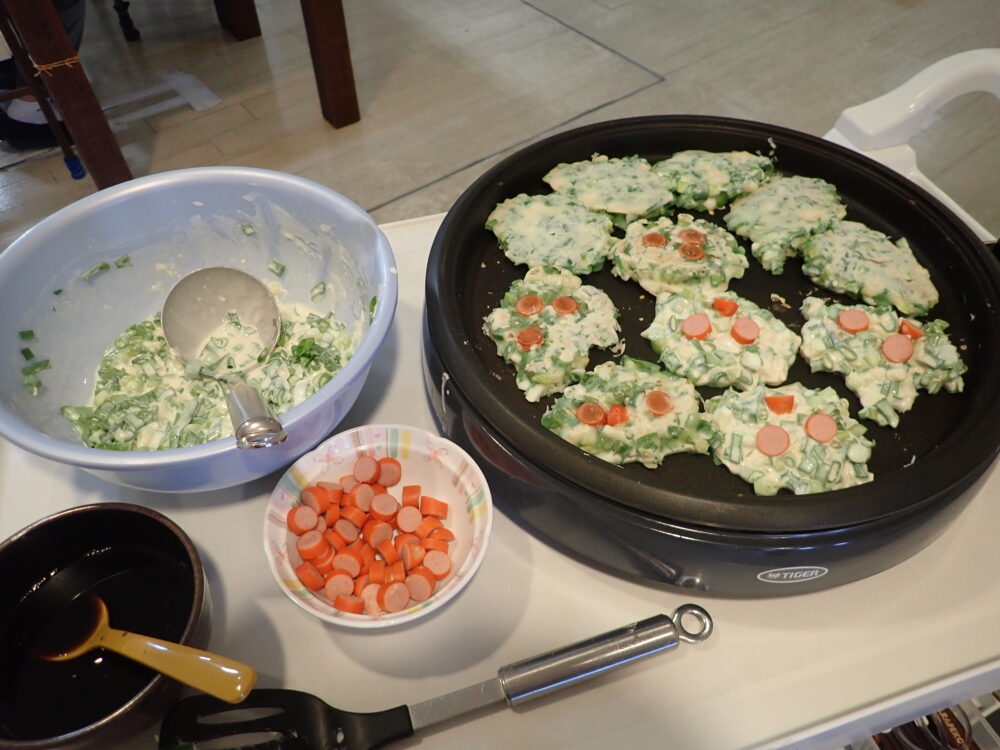 施設で収穫したネギでねぎ焼きを作りました(≧▽≦)