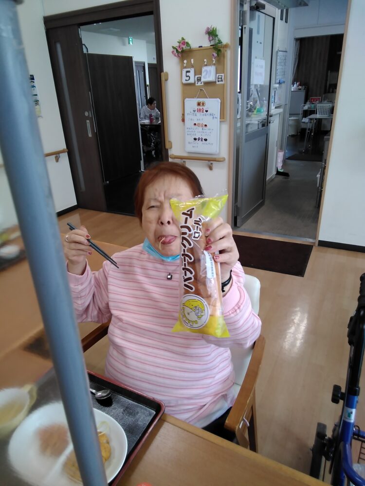 「おいしいわぁ!」「入院しとった時、バナナロールよう食べよった」