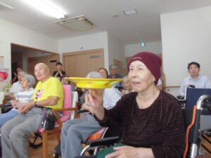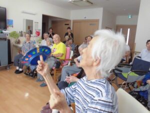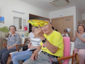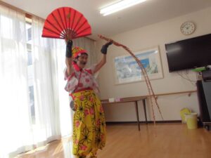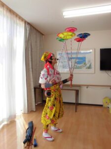 『皿回し』『玉すだれ』『腹話術』と盛りだくさんです♪腹話術のお友達は、さっちゃんです👧💖