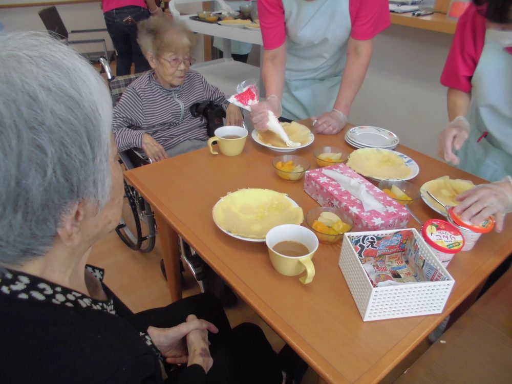 皆さんでクレープを作ってもらい食べてもらいました!