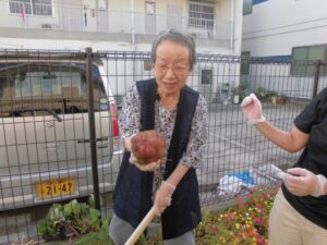 農家育ちの○○さん、くわをもって大奮闘!!『楽しかった~ぁ』っと!!
