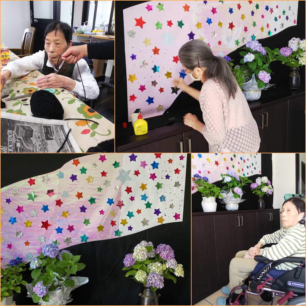 五色のたんざく 私が書いたお星さまきらきら 空から見てる~