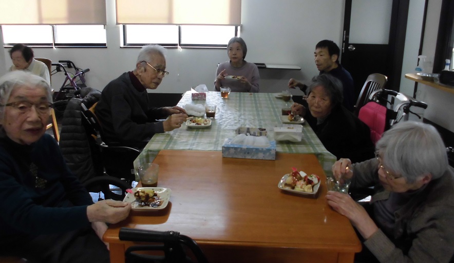 バレンタインの日のおやつはチョコレートたっぷりかけたフルーツ盛り合わせでした。