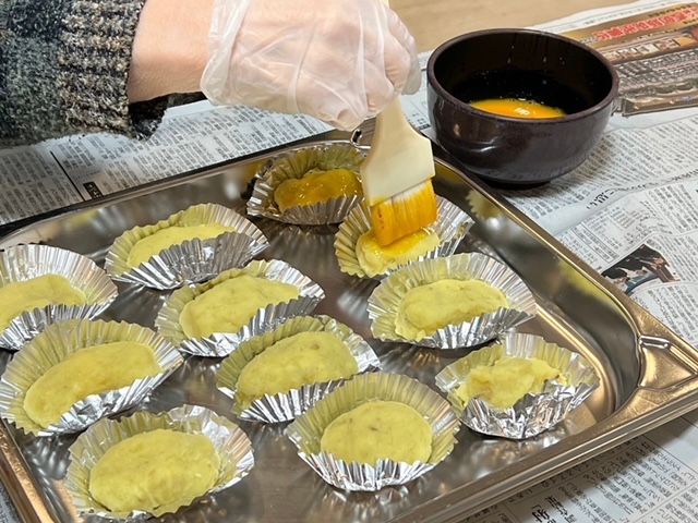 最後にたまごを塗って焼きあがるのを待ちます🎵