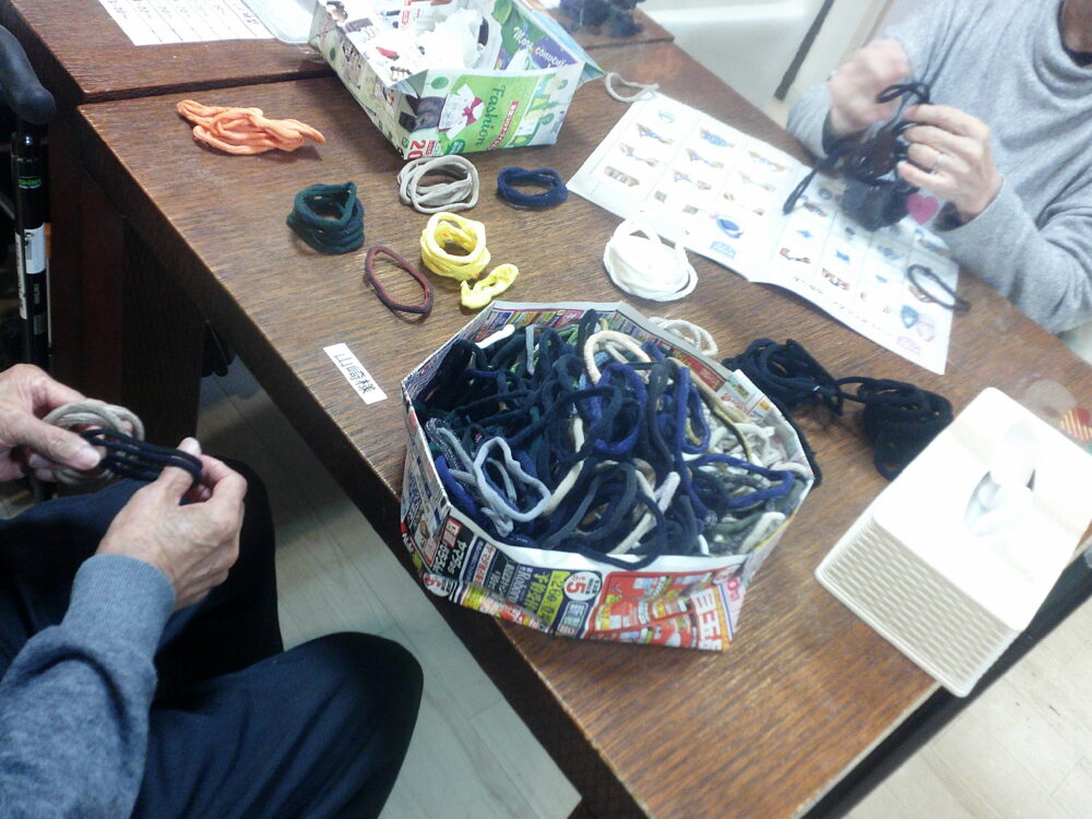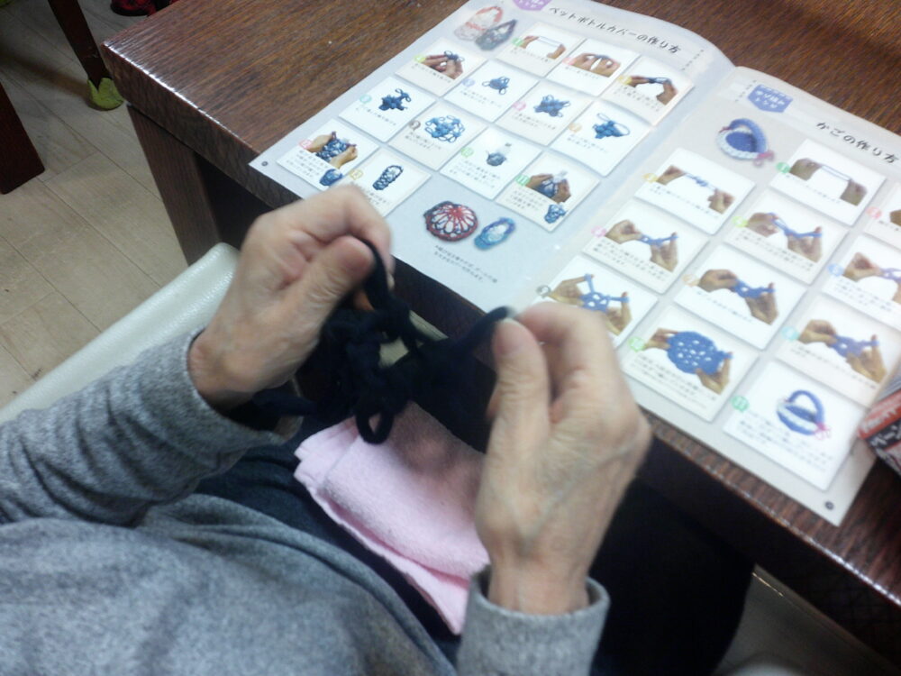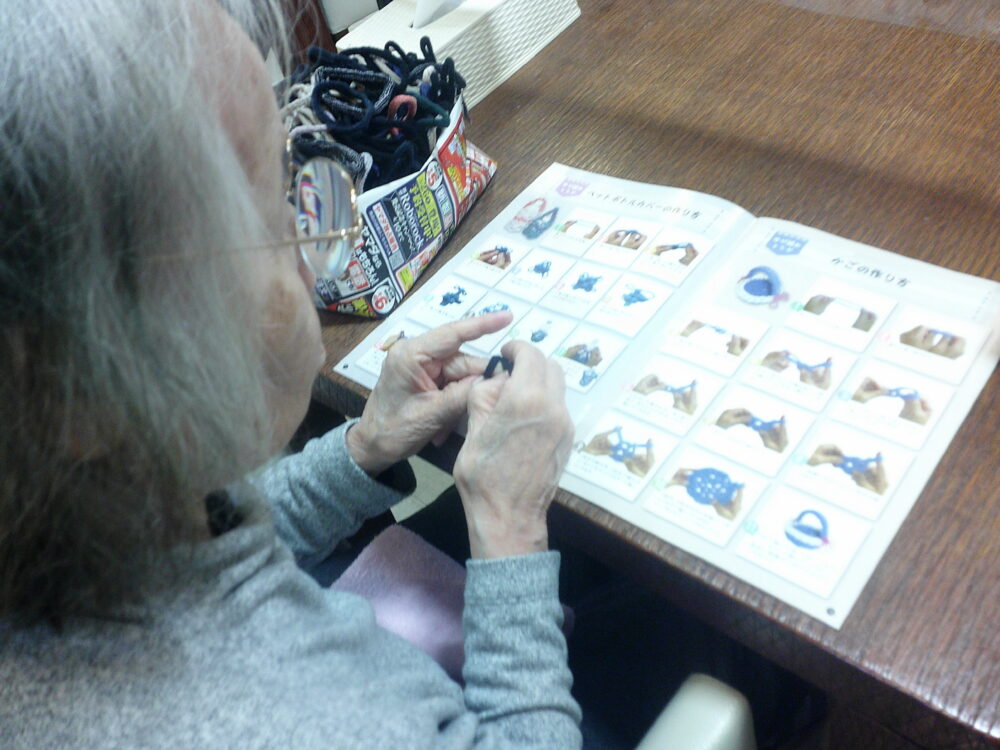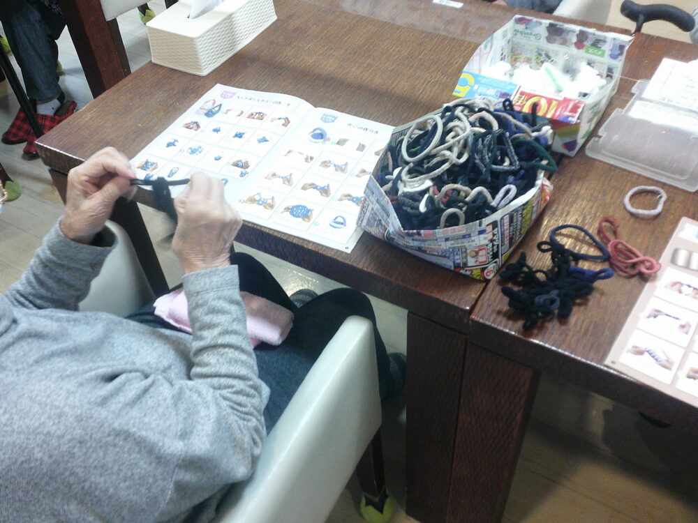 「ゆび編みBOOK」を見ながら早速手先の器用な利用者様が