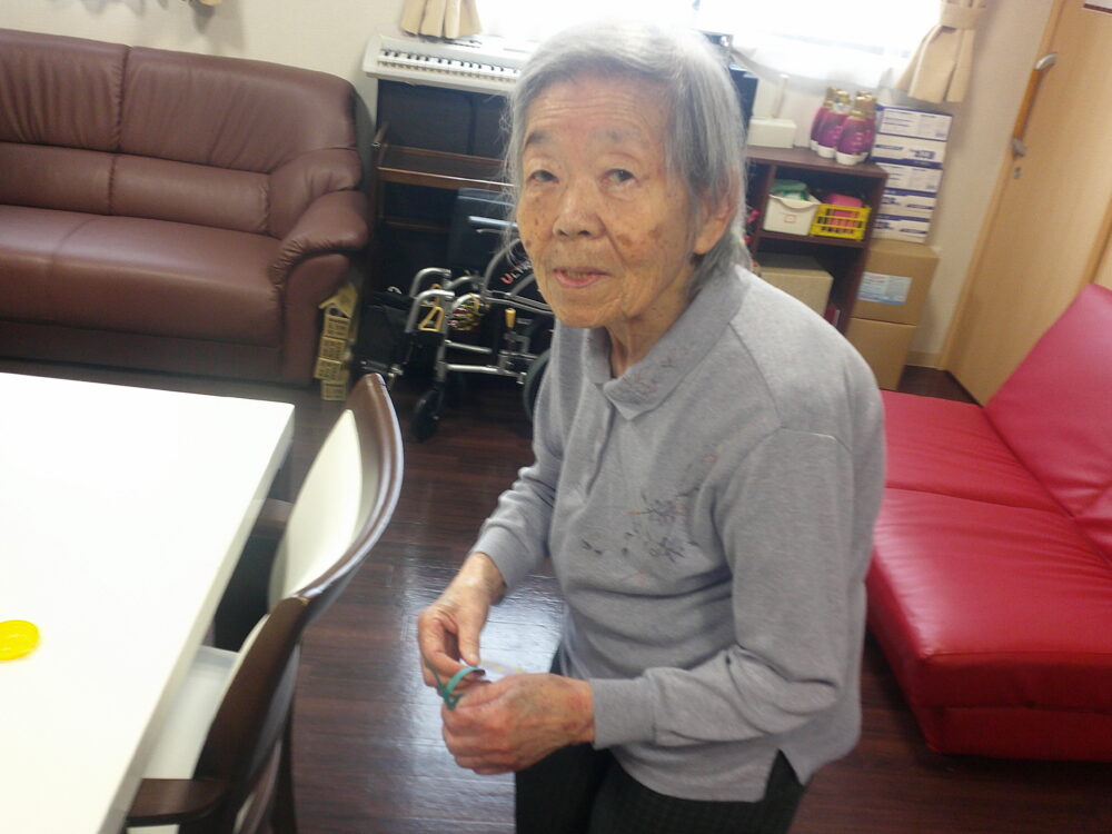 編んでるのを見ながら、前の席の男性利用者様が