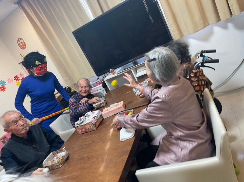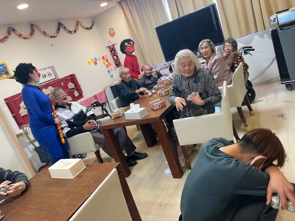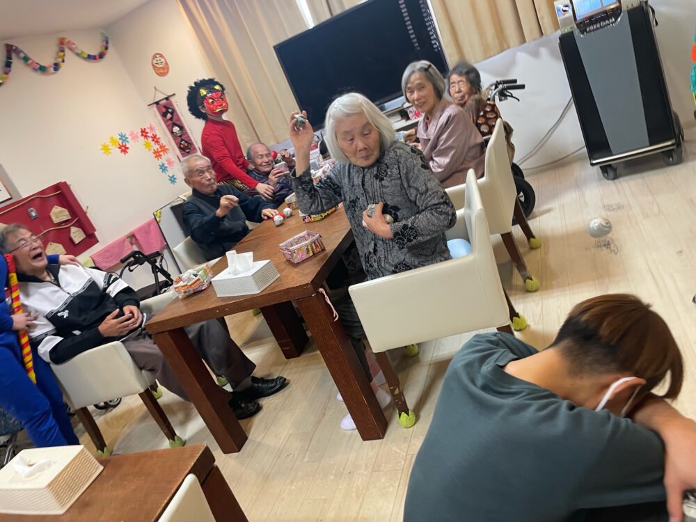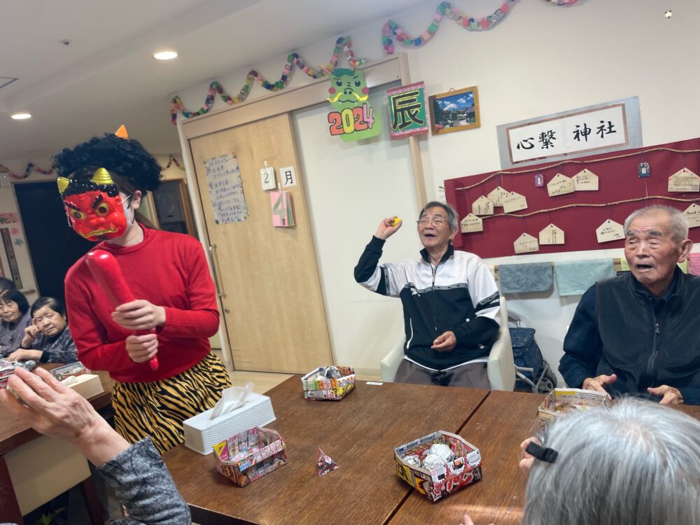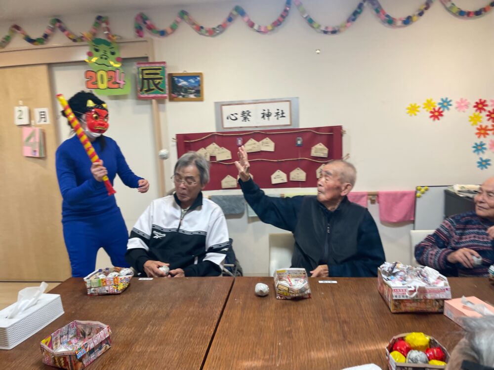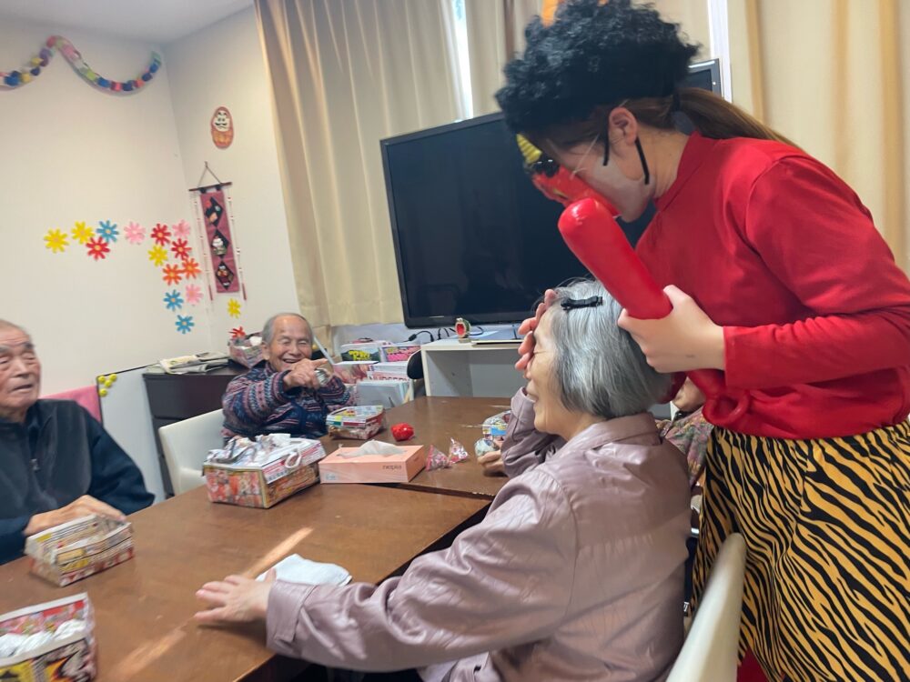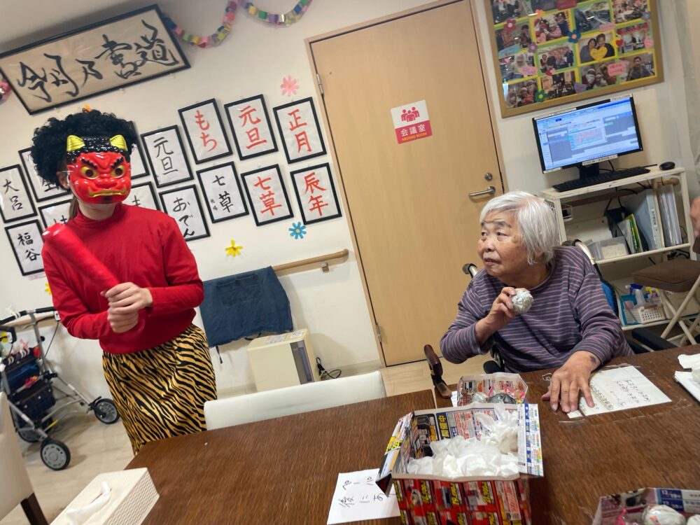 赤鬼さん目掛けたら利用者様にあたってしまい、
