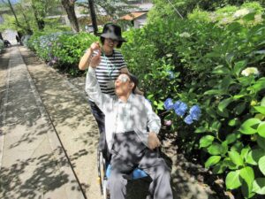 あじさい見学の道中も何事もなく、無事、施設へ戻りました!!たくさんのあじさいと笑顔に囲まれて職員も癒されました💛次は第3班です!!乞うご期待(笑)