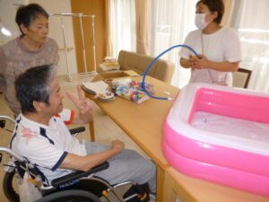 そして、水風船・ボウリング・ハンドマッサージを行い、中でも女性にはハンドマッサージが人気でした。