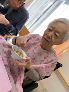 利用者様に桜餅用のごはんに桜色になる魔法の粒粒を