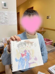 作業所の友達に描いてもらった絵に、色を塗りました(#^.^#)