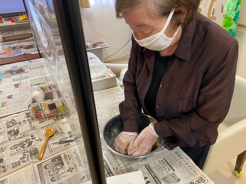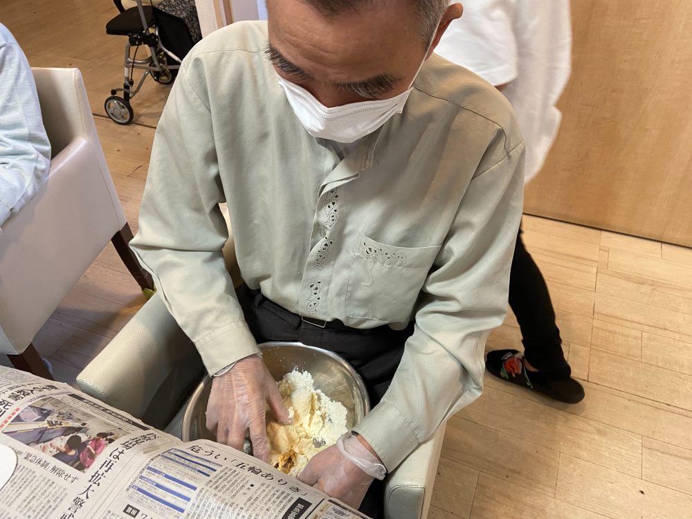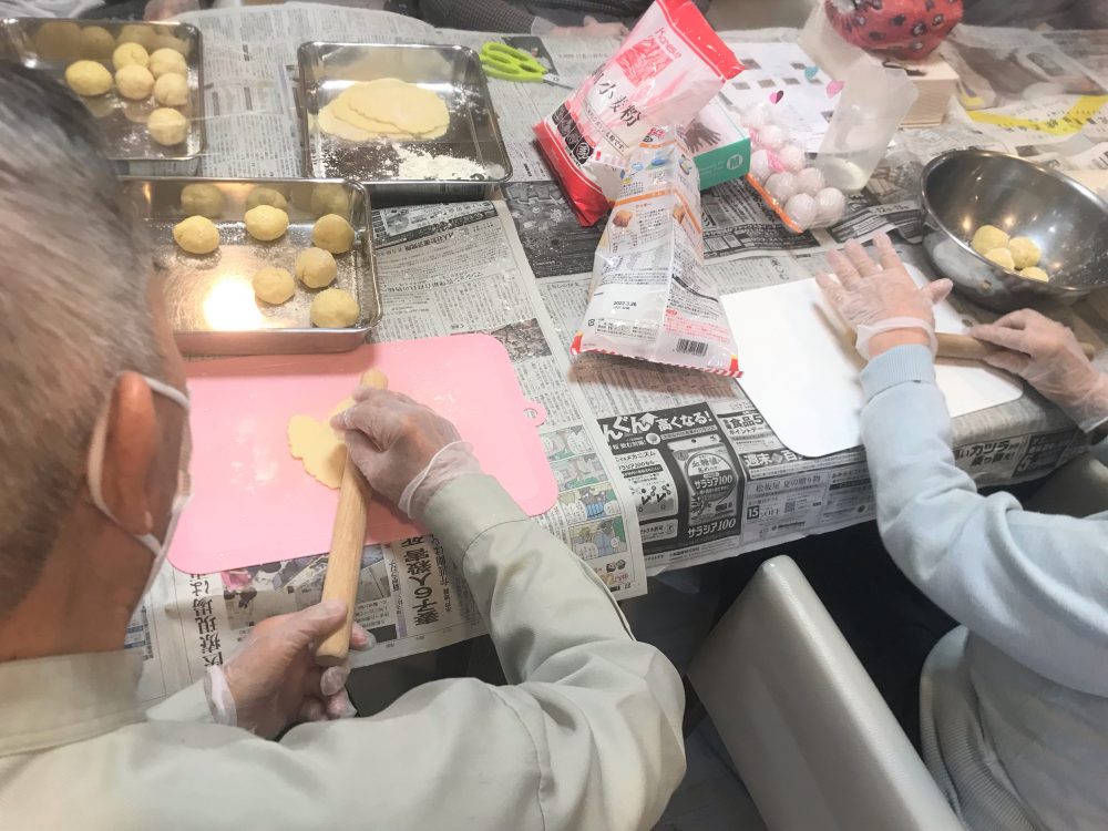 女性の利用者様方、立って生地を練って下さり☺!!