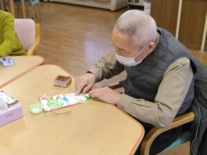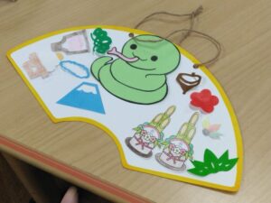 松竹梅やこま、富士山などお正月らしい飾りつけをお好きな位置に貼って頂きました☆