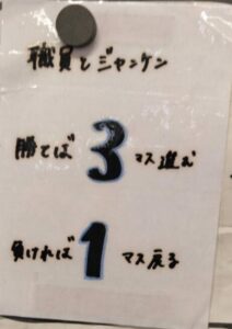 「職員とじゃんけん 勝てば3マス進む 負ければ1マス戻る」