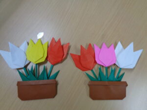 チューリップの折り紙は職員と一緒にご利用者様に折って頂きました!!