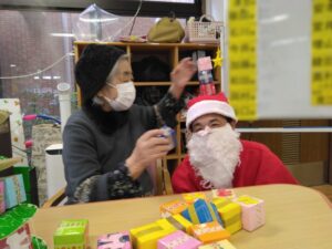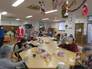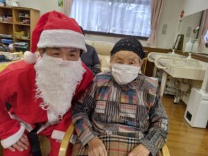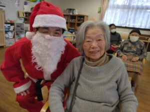 おやつの時も記念撮影を求められてニコニコのサンタさんです♪