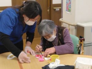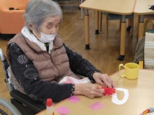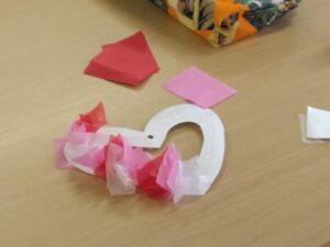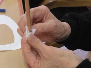 お花紙を小さく切ったものを鉛筆に巻き付け…