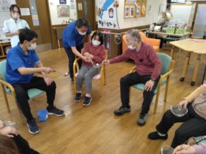 「膝が痛い!!」とお題を書いた職員に文句を言っていました(笑)