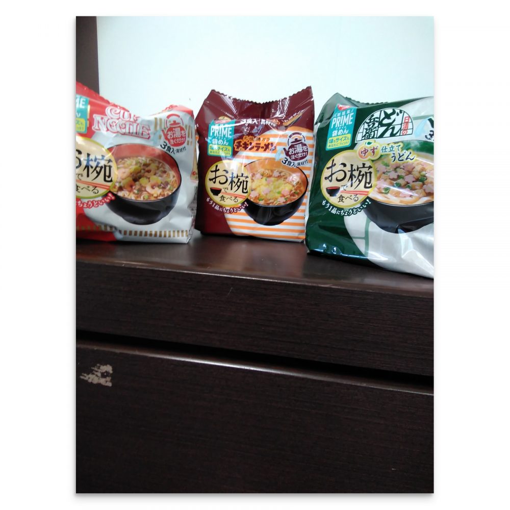 ご飯、おかずは、そっちのけで、真っ先にインスタント麺をすすり、笑みがこぼれます。