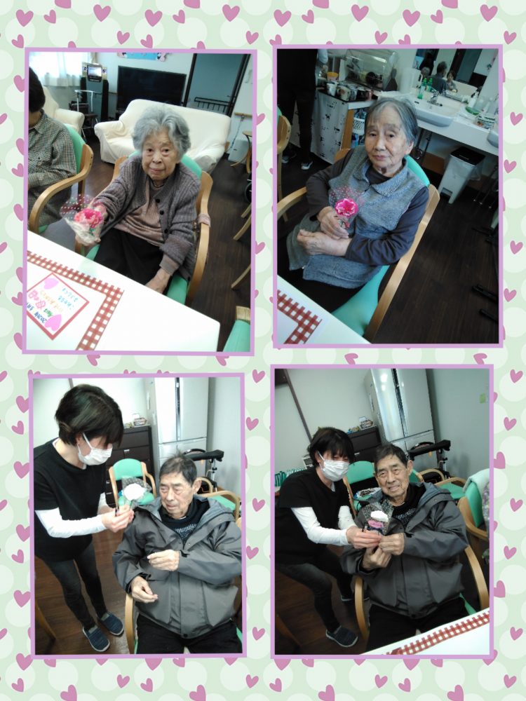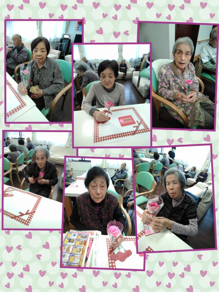 ♥スタッフ手作りのカーネーションと、メッセージカードでお祝いです。