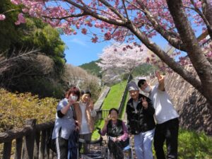 さっそくみんなでバスに乗って坂本の観光駐車場にお花見にレッツゴー!