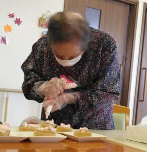 クリスマス会でケーキを作ってサンタさんをお迎えしました
