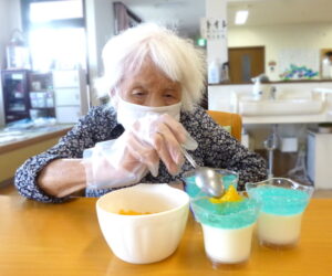 今日のおやつは『七夕ゼリー』を作りました。キラキラで涼しそうです!
