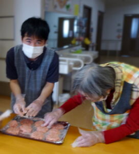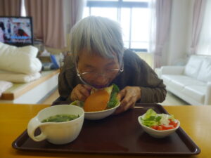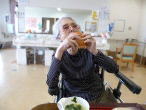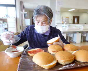 入居者様とお話してる時に「ハンバーガー🍔?食べる食べる!」「一緒に作るよ!」と