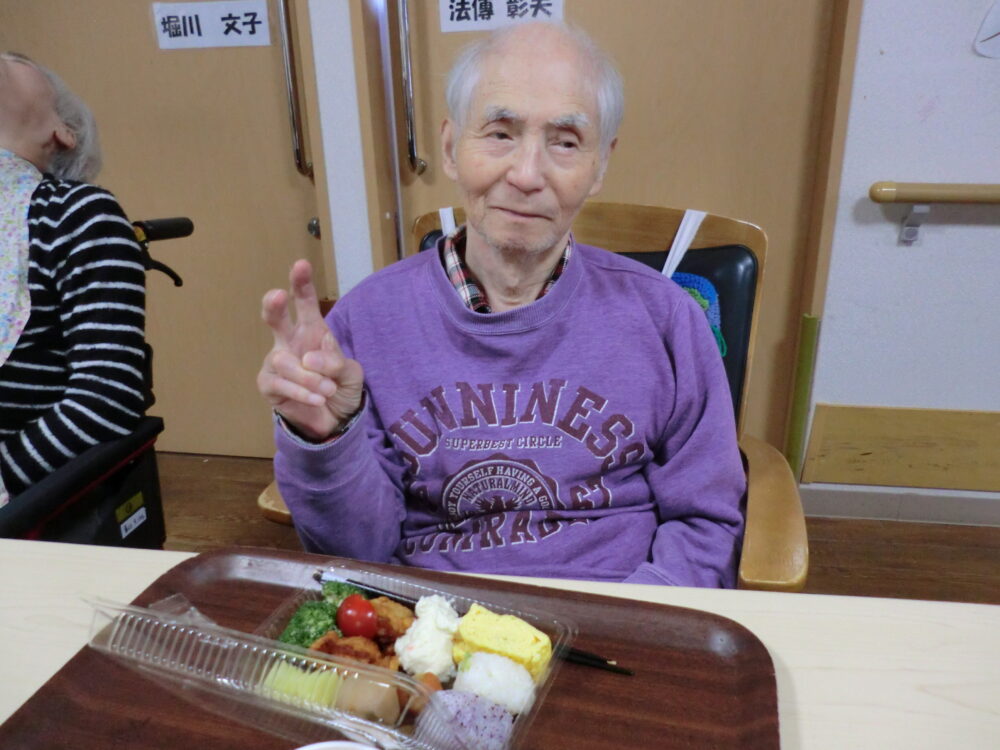 2023.05.22 グループホーム平和苑 お弁当イベント(^O^) 5月15日、お天気はあいにくの雨でしたが、職員で丹精込めてお弁当を作りました! コロナ前は遠足に行っていましたが気分だけでもと、手作りのお弁当を召し上がっていただきました(^O^) 中身は定番の唐揚げ、卵焼き、ポテトサラダ、煮物、おにぎりでした(^^♪ みなさん喜んで美味しそうに召し上がっておられました(^_-)-☆ コロナウイルス感染症も5類に移行されたので 早く安心して外で食べられるようになるといいですね!(^^)! 一覧ページに戻る
