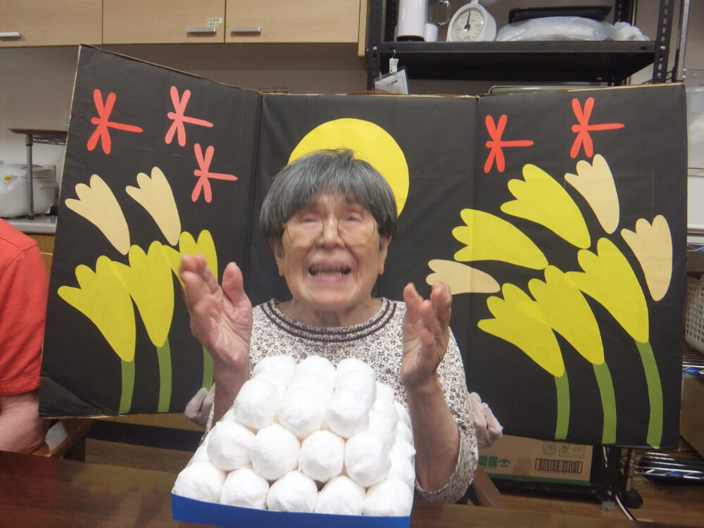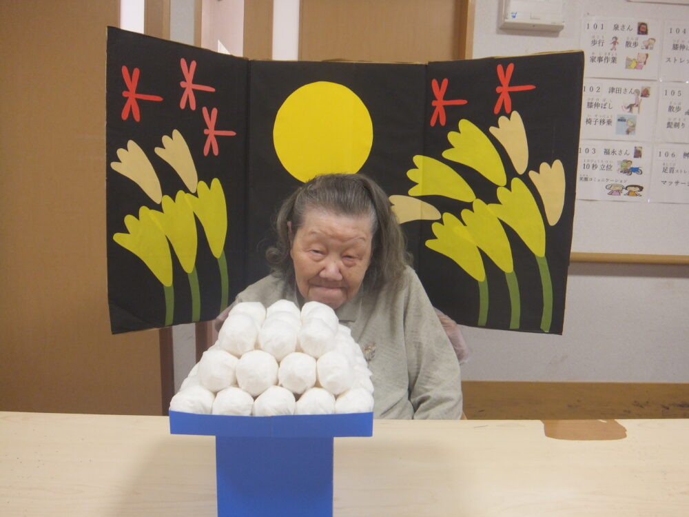 お月見パネルで写真をパチリ 笑顔も見られました。