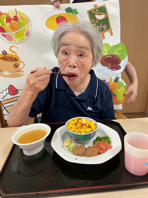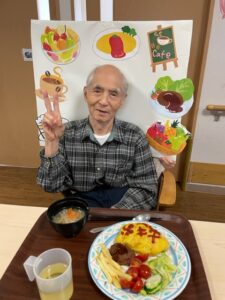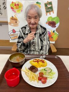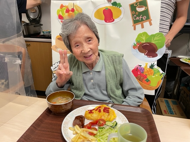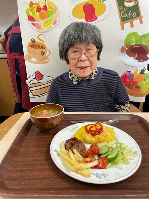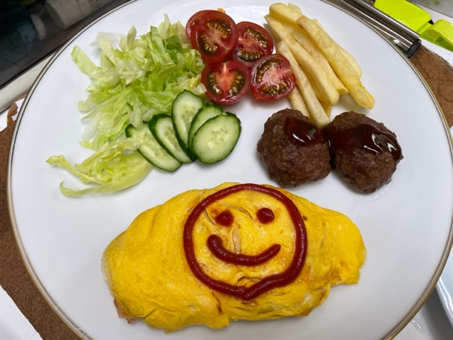 オムライス、ミニハンバーグ、ポテトにサラダです☆
