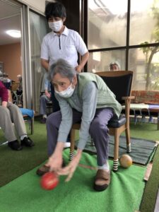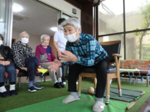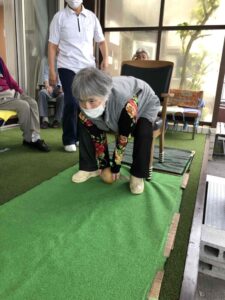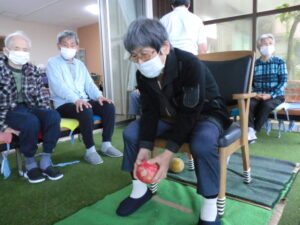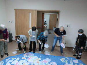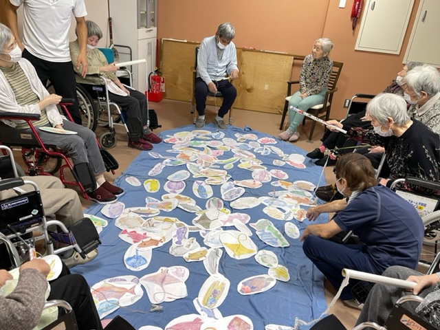 魚釣りでは、魚についているクリップに竿先の磁石をくっつけないとなかなか釣れないため、皆様必死になり静かなゲームとなりました(笑) 腕の位置を固定し、竿を持っておられるので、腕の運動にもなりました😁釣れた時は笑顔になられていたのが印象的でした(*’ω’*)