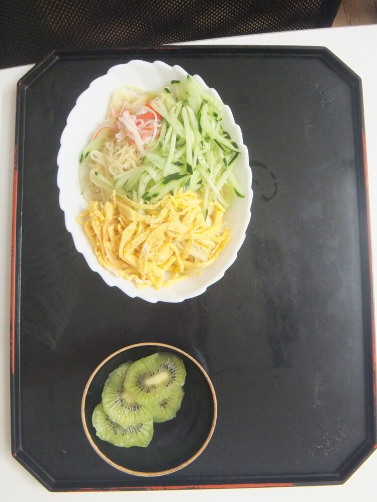 7月7日、七夕の昼食に冷やし中華とフルーツを召し上がられました。