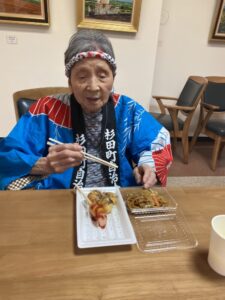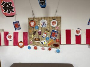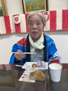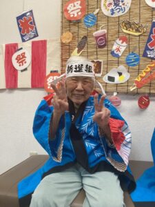懐かしい夏祭りの雰囲気に,感激され涙される入居者様、普段食事を余り召し上がれないのに屋台メニューを完食してくださった入居者様、太鼓を力いっぱい叩いてくださった入居者様、盆踊りのリズムに楽しそうに踊ってくださった入居者様等、皆さん、夏祭りを楽しそうに過ごして頂けたと思います♪(´▽`)