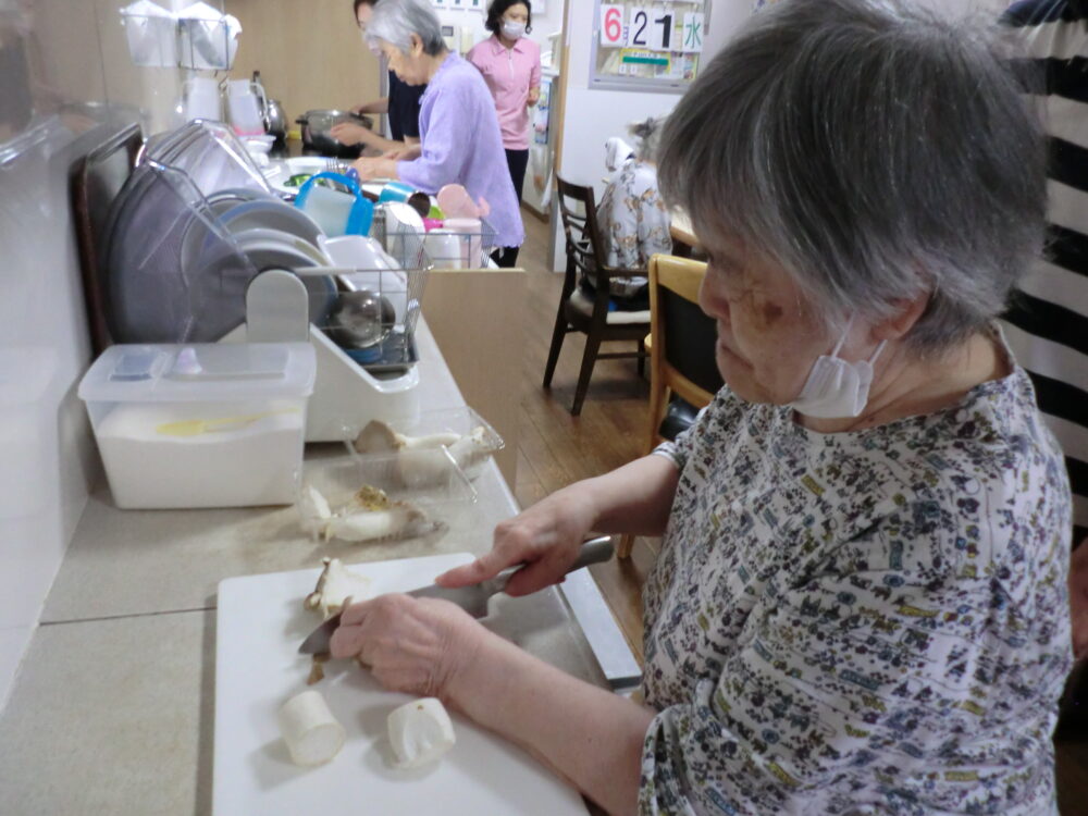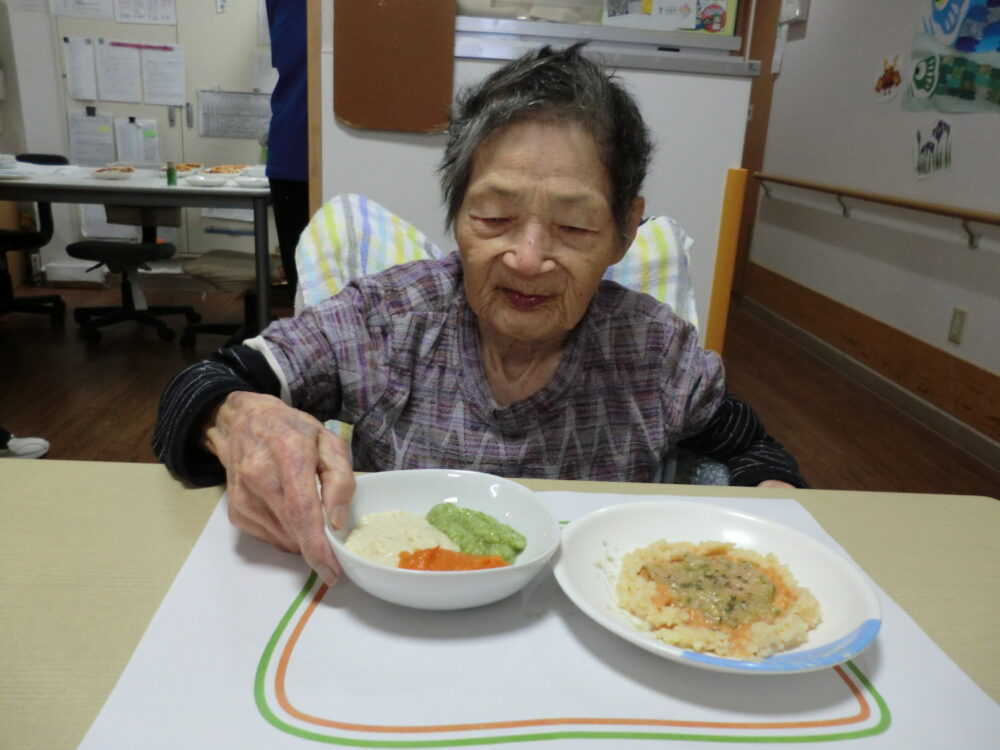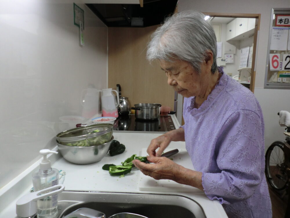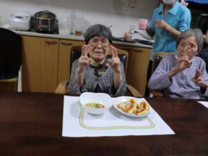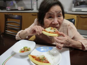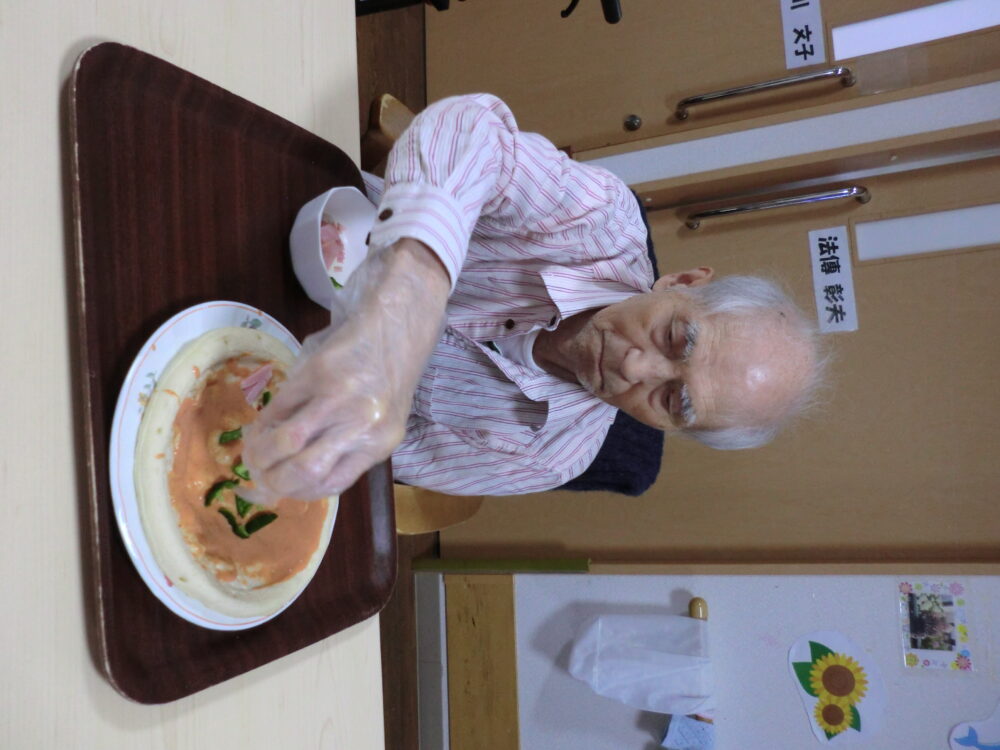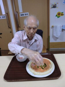 入居者様に食材切りやトッピングを手伝っていただきました(^^♪