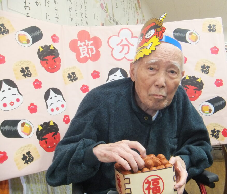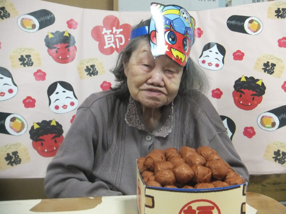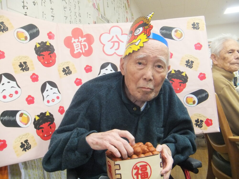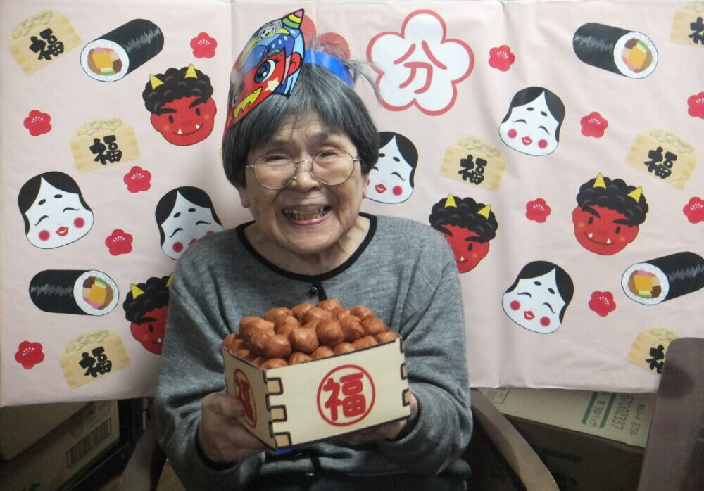 2026.02.26 グループホーム平和苑 節分👹 こんにちはグループホーム平和苑です🤗 2月4日に節分会をさせていただきました🫘🫘 昼食に巻き寿司や甘~い甘納豆🫘を召し上がって頂きました😊 可愛い鬼の面をつけていただき写真をパチリ👹 豆を投げられ節分の雰囲気を味わっていただけたと思います🤗 一覧ページに戻る