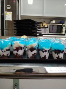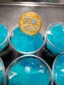 2種類の手作りゼリーとアイスとヨーグルトとコーンフレークにチョコレートソースでアクセント💓
