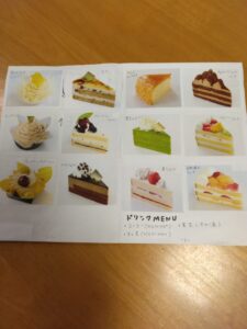 甘いものが大好きな皆様に、今回はメニュー表を手作りして、お好きなケーキを選んで頂きました