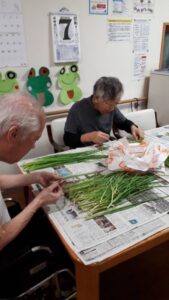 裏の畑でもらった▪️くじょうねぎ▪️をしょうやくしてもらいました🤙🏼(しょうやくとは岡山弁で畑から採ってきた野菜から泥とか雑草とか枯れてる所を取り除き食べられる状態にすること)
