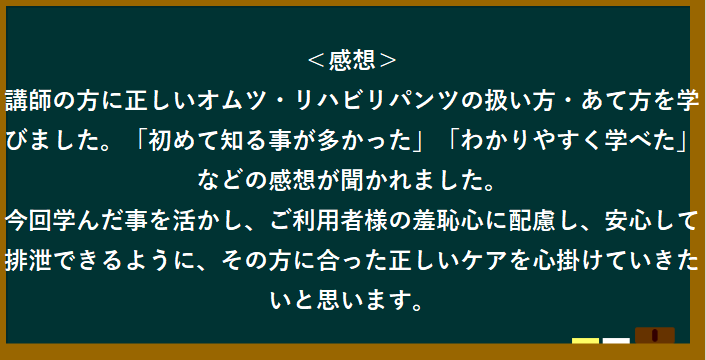 2018.06.01 ハートリンク藤崎 📚オムツ研修✎5⃣月3⃣1⃣日 こんにちは!藤崎です。今回は『花王:オムツ研修』を行いました。岡山エリアの各施設に講師をお呼びし最後に藤崎にきて頂きました!! 実際に着用してみました。 一覧ページに戻る