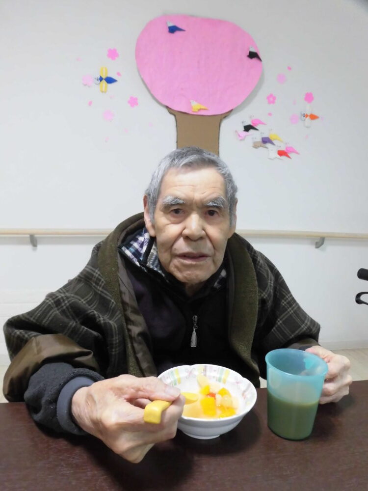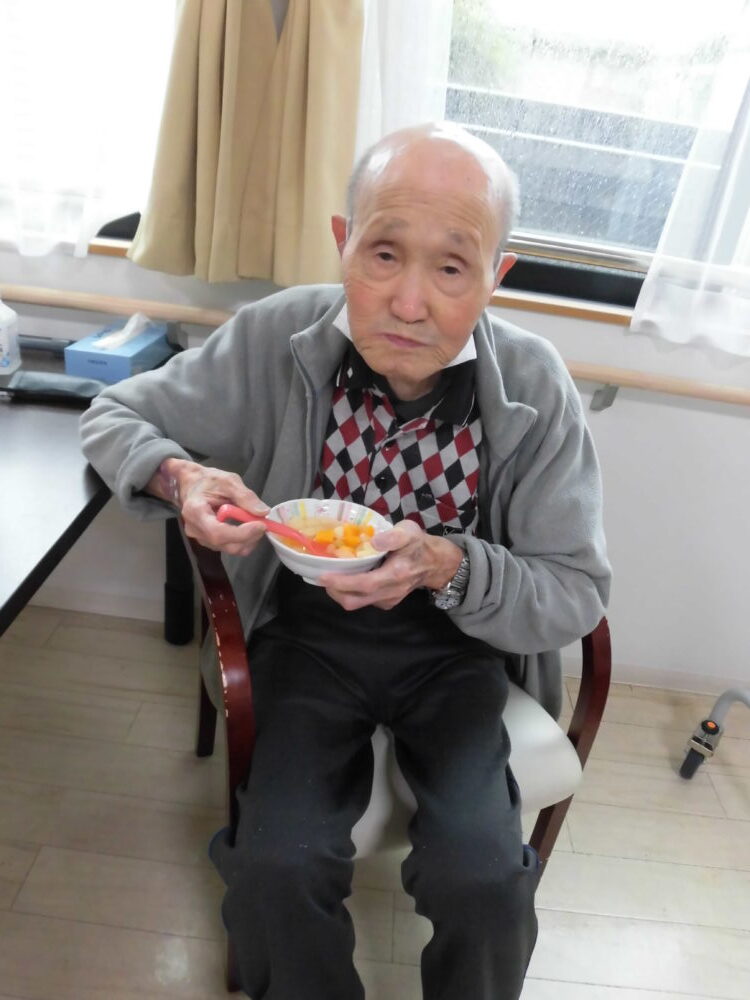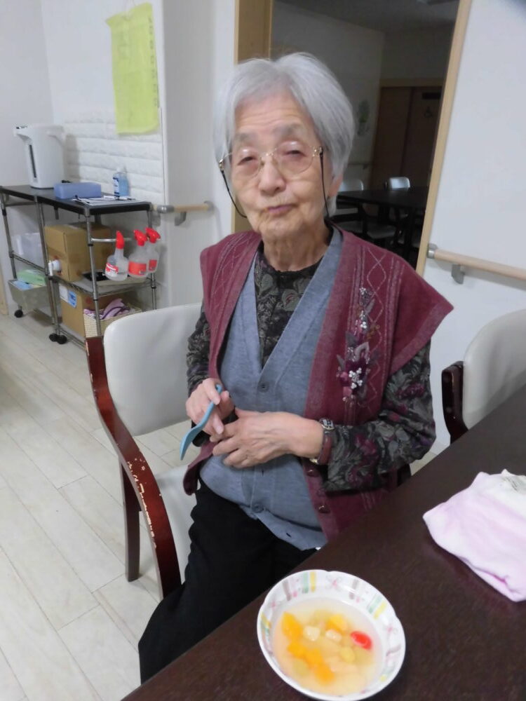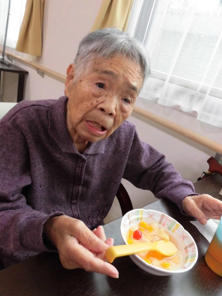 おやつの時間にサイダーで作った手作りフルーツポンチを召し上がっていただきました😋