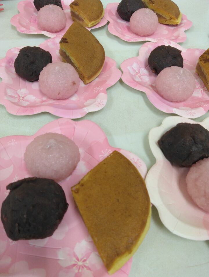 桜餅 おはぎ 桜餡のどら焼き を温かい緑茶と一緒に