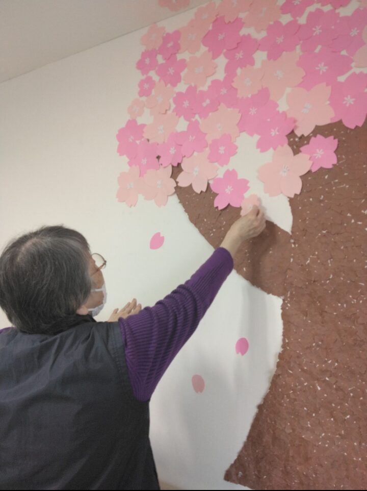 こちらの桜の木は、職員と利用者様の共同作業で、