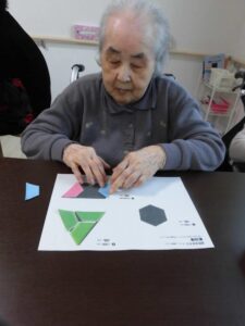 お題の色を探し、図形を完成させるゲームです(*^^)v