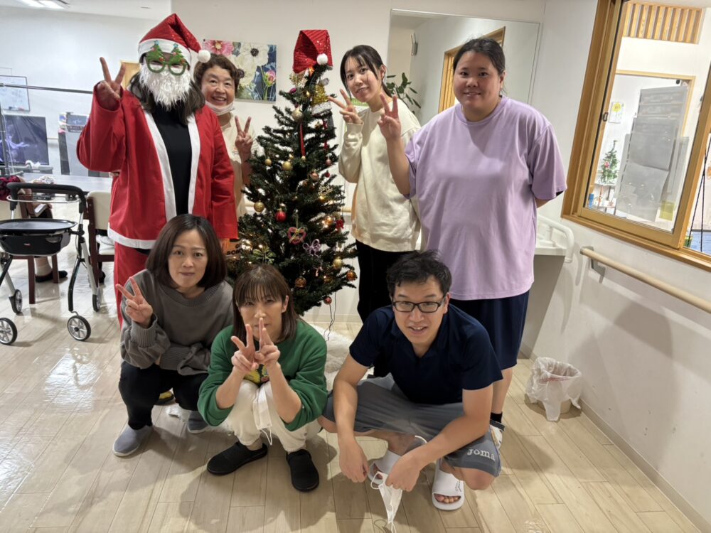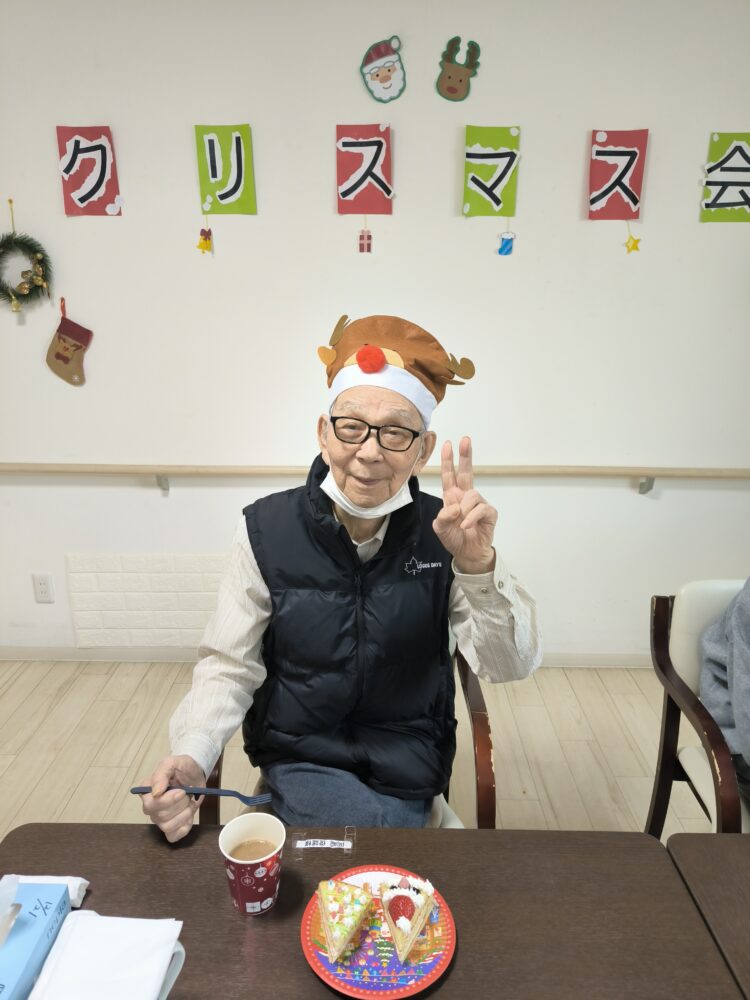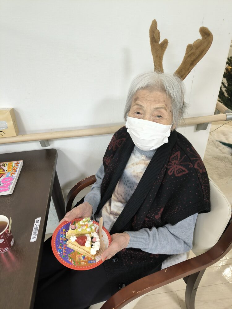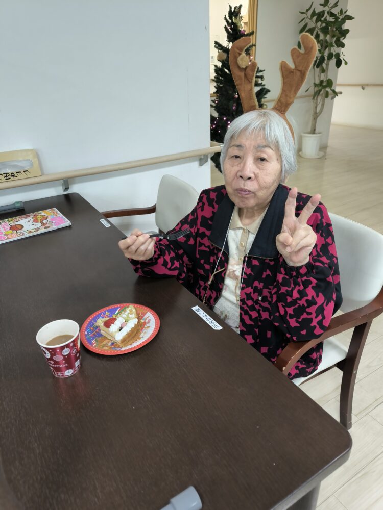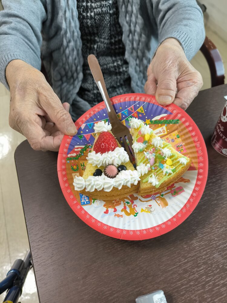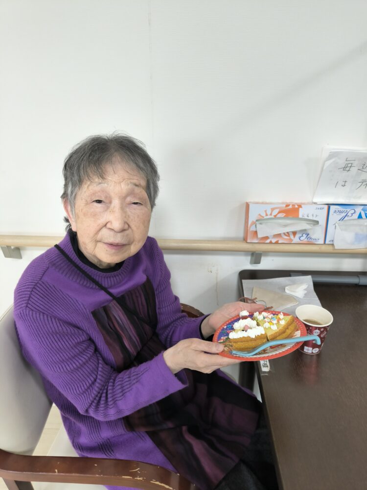 利用者様、職員、皆さんで写真を撮り手作りのケーキを食べました💕