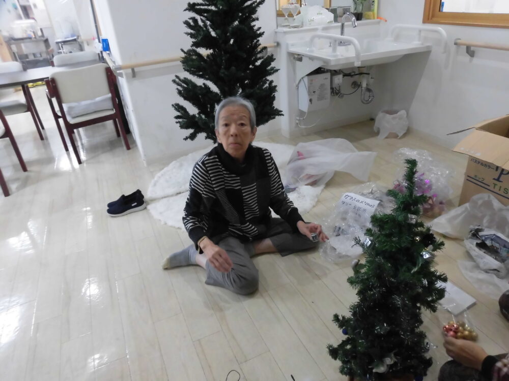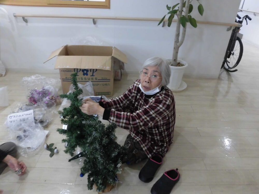 今日は皆さんでクリスマスツリーの飾り付けをしました。