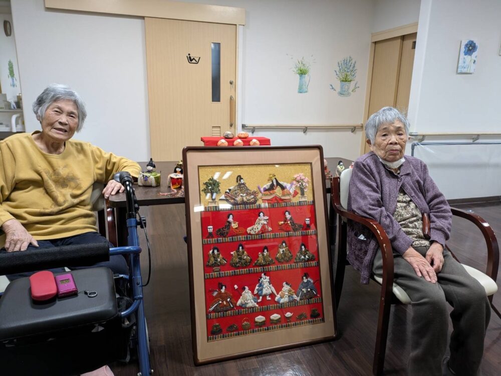 数日前に雛祭りイベントをしました。お雛様の前で写真を撮り、昼食は職員が作ったちらし寿司とそばを食べました✨