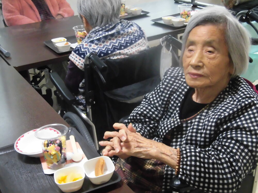ケ-キパフェに何をのせようかな-と楽しそうに作っていました。