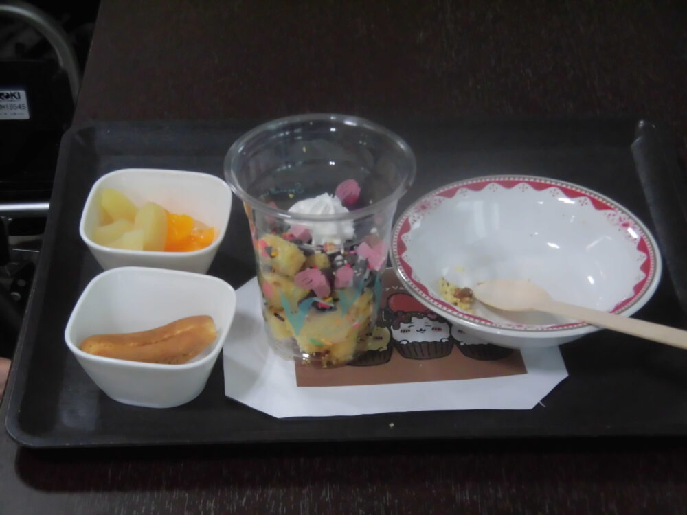 おやつに1人ずつカップに好きな物を入れてケーキパフェを作りました😁