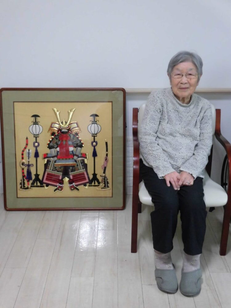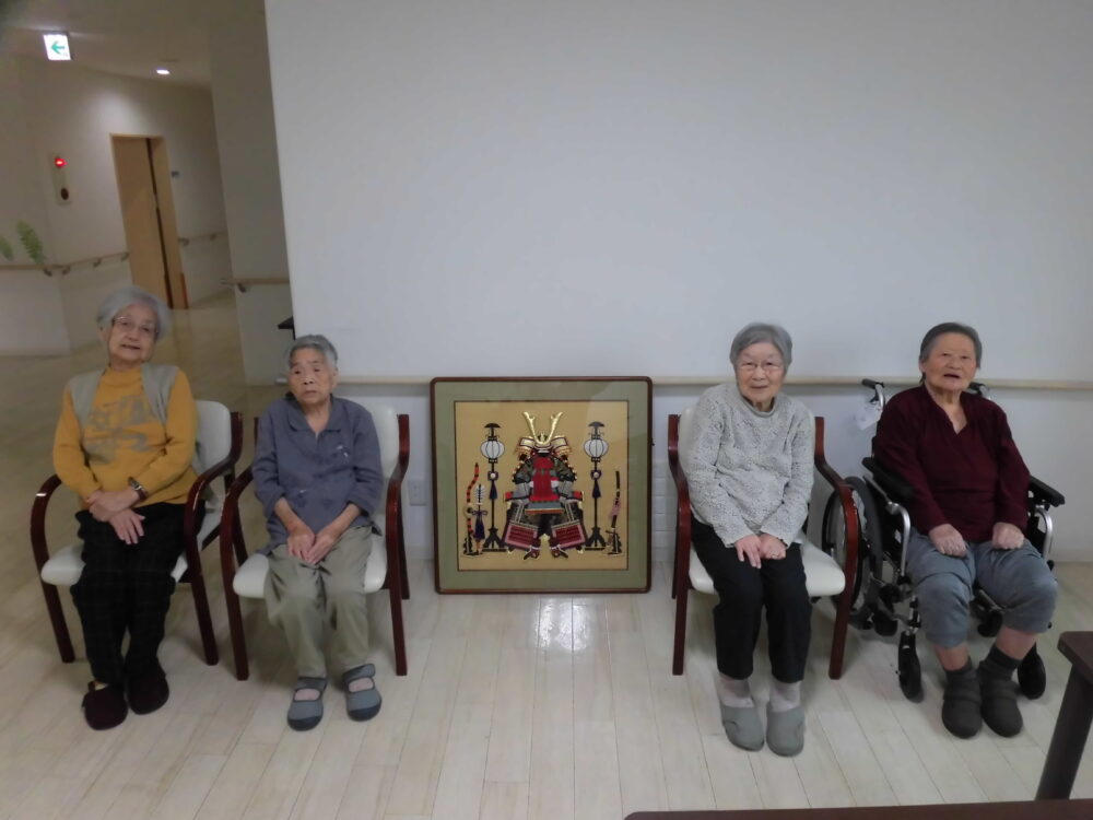 ご入居様が昔手作りされた五月人形の飾りをお借りし、施設で飾らせていただきました😌✨